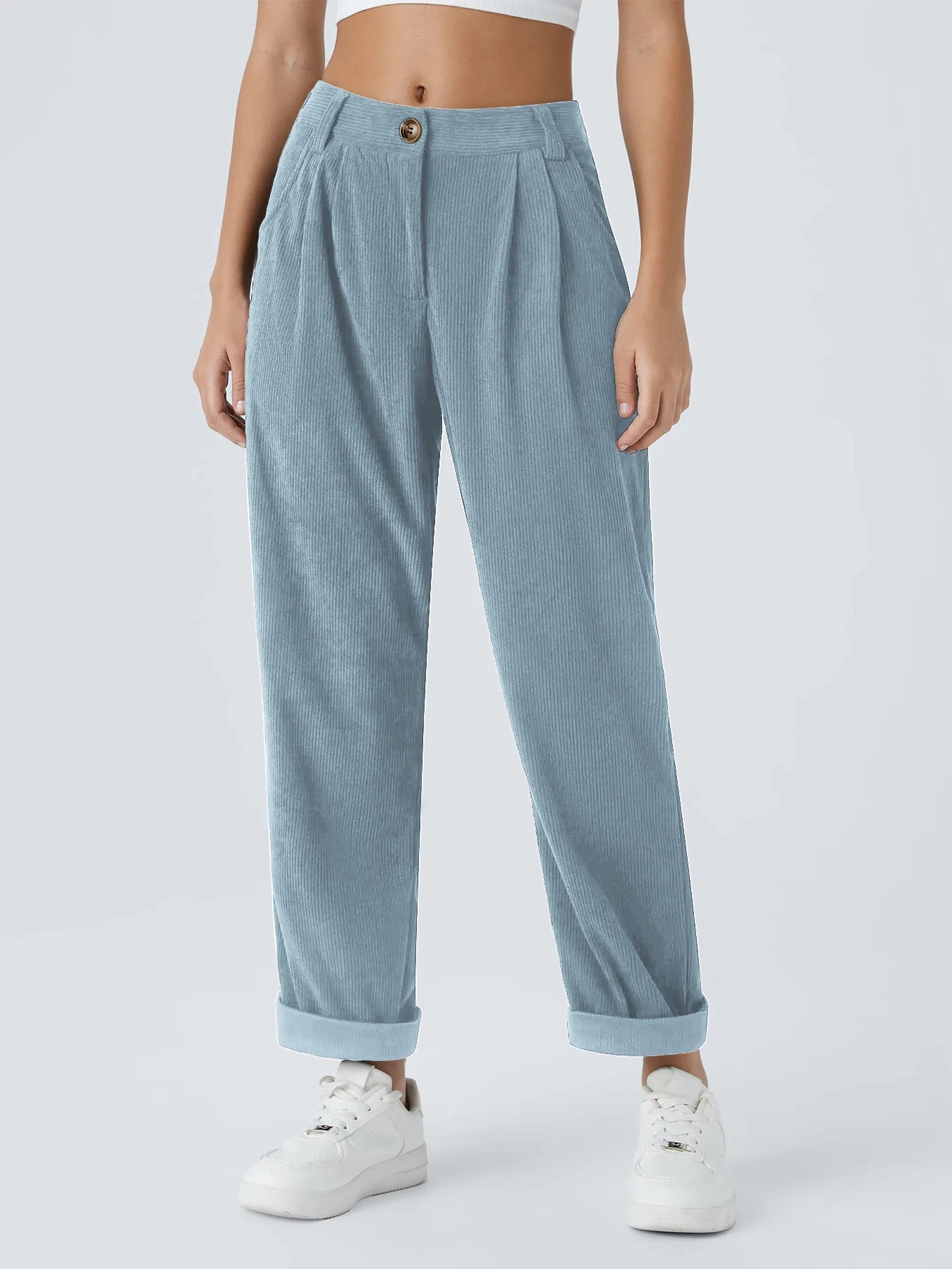 Women's new autumn and winter solid color corduroy casual suit wide-leg pants plus velvet straight pants to look slim